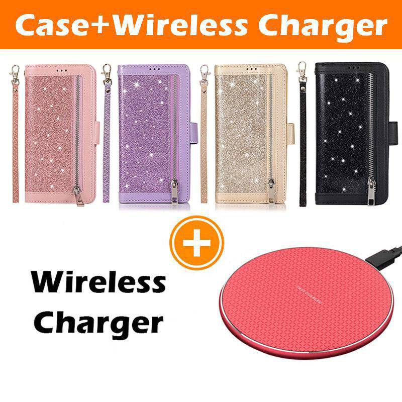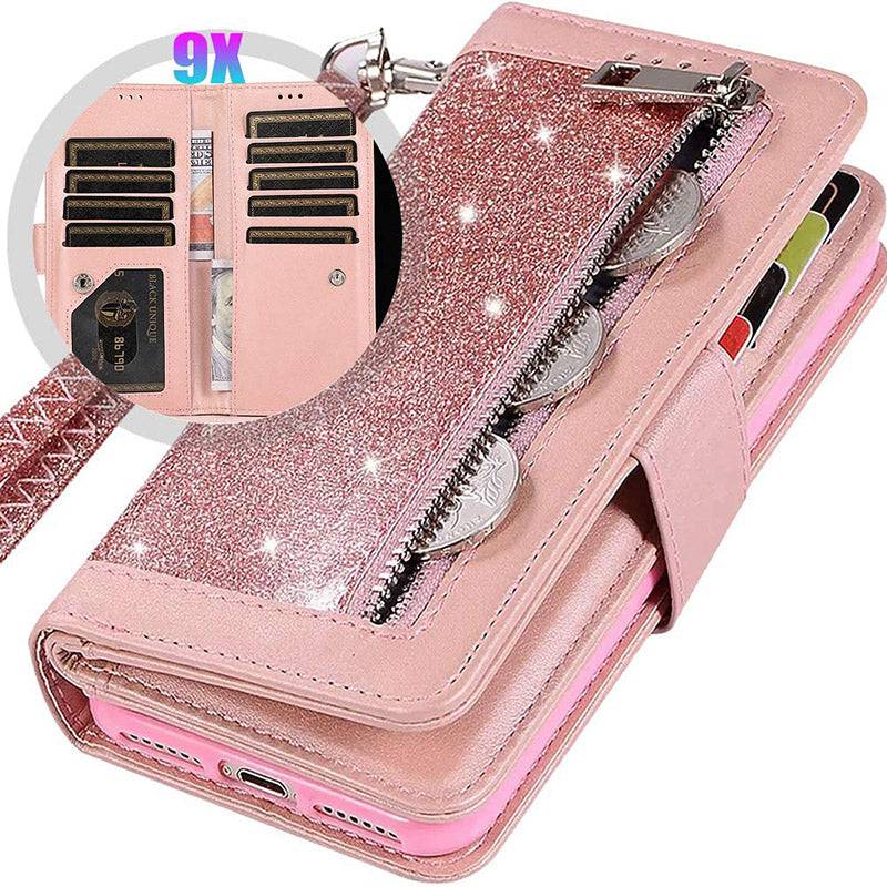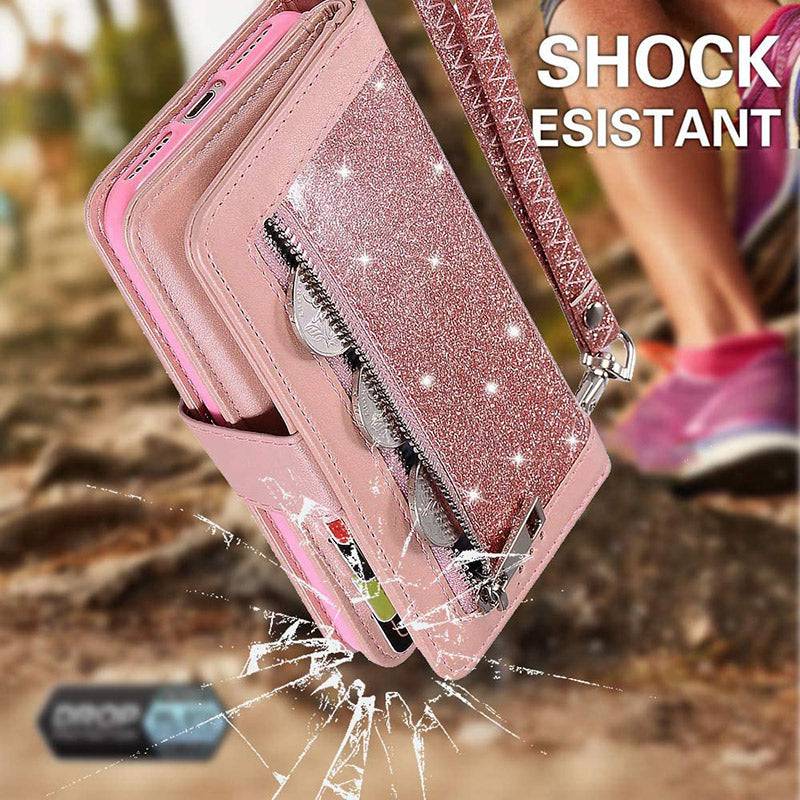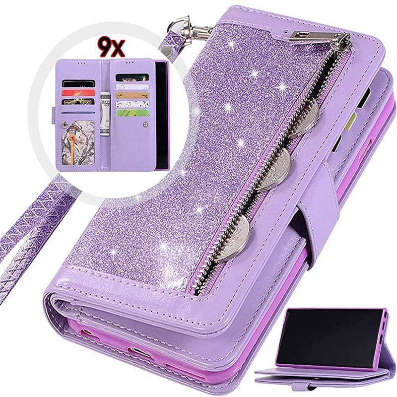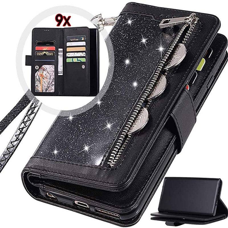 Bling Wallet Case with Wrist Strap for Samsung Note 20 Series
