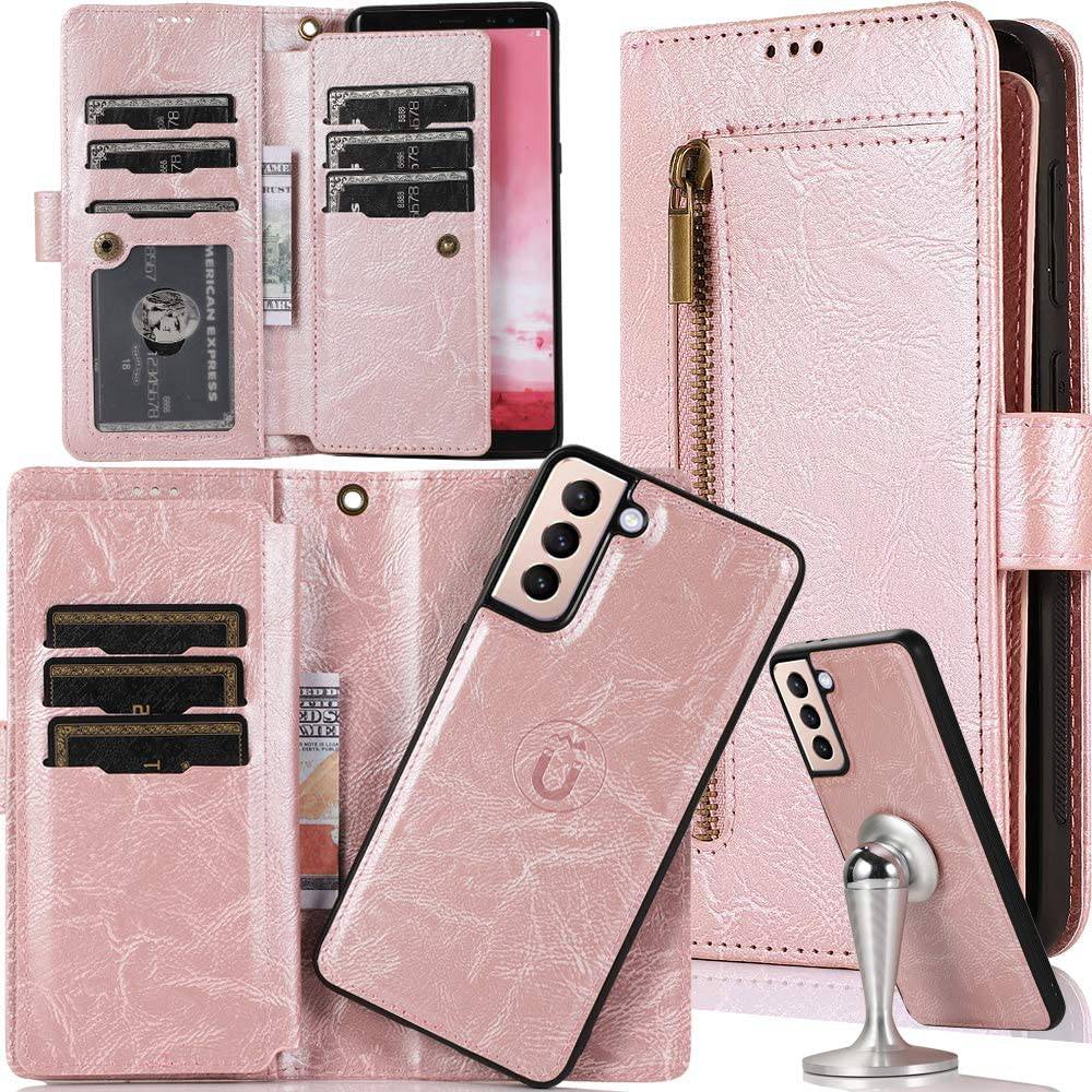 Detachable Flip Zipper Purse Phone Case For Samsung S21 Series