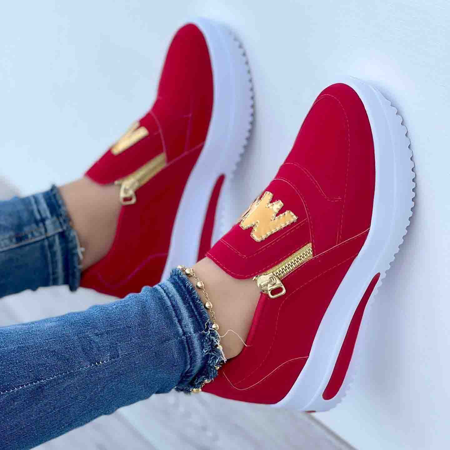 Meet Women's Casual Zipper Platform Sneakers for Women. The unique design provides perfect fit and gives you stylish look on any occasion. Made of breathable, high-quality PU , you can enjoy the real feeling of "walking on cloud". Durable and soft upper can withstand years of wearing. These Sneakers are designed to outlast many summers to come with their high-quality composition. You can keep your feet dry all day with the antibacterial shield.