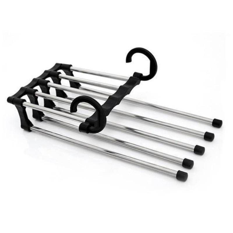 - Each hanger has five layers, effectively saving wardrobe space.