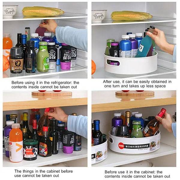 • ✅【Anti-slip Design】:  Lazy Susan's bottom adopted a non-slip silicone design.The anti-slip performance is excellent.😝 When you rotate it, you don't have to worry whether the items in the storage box will slip out