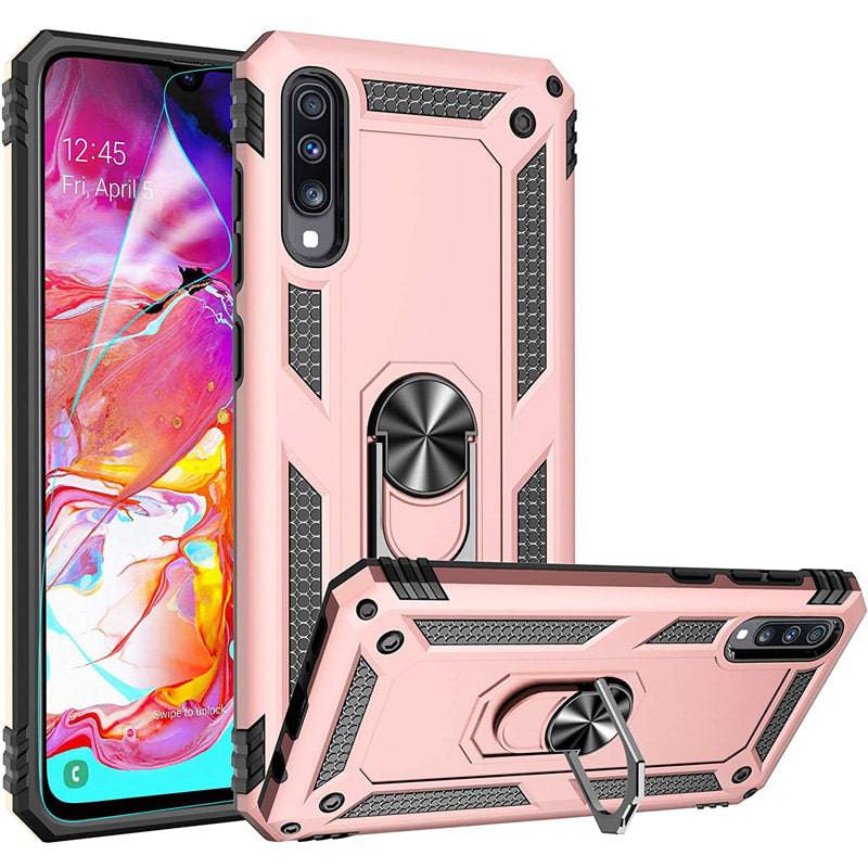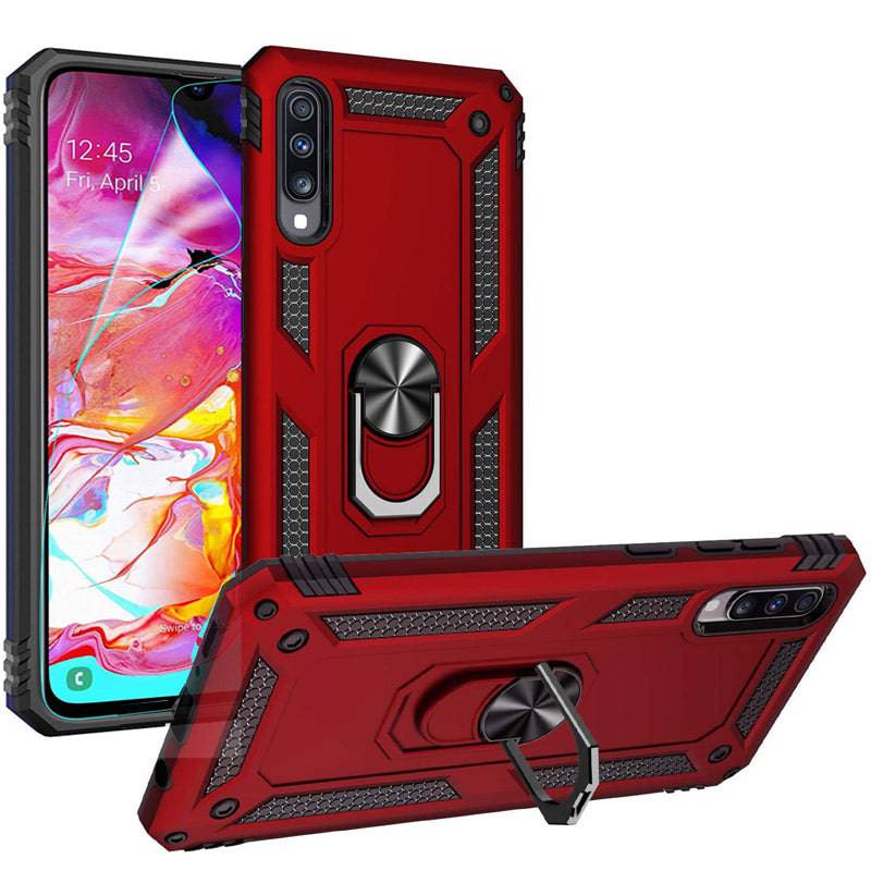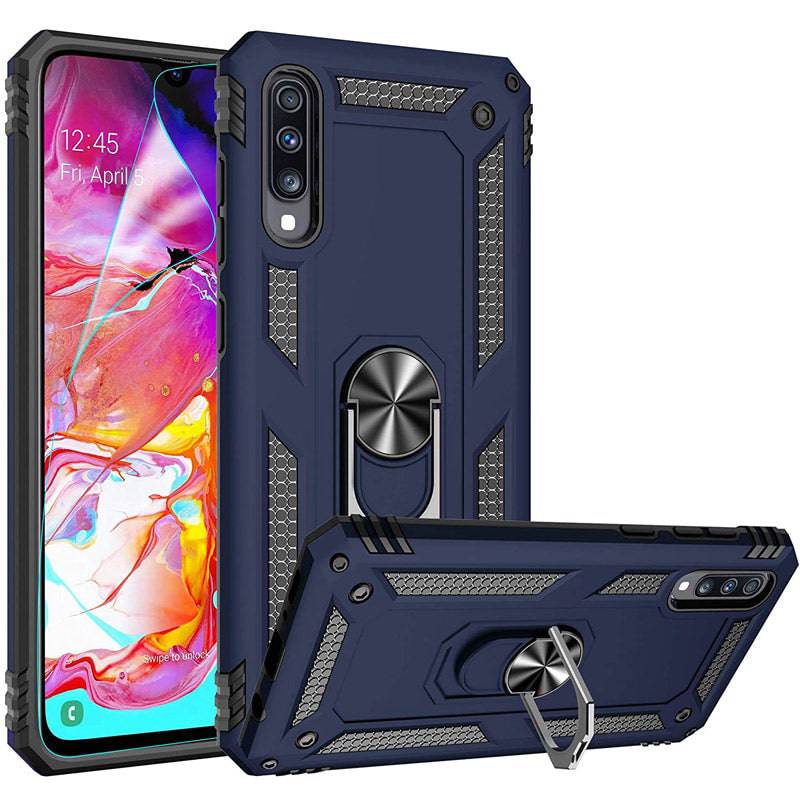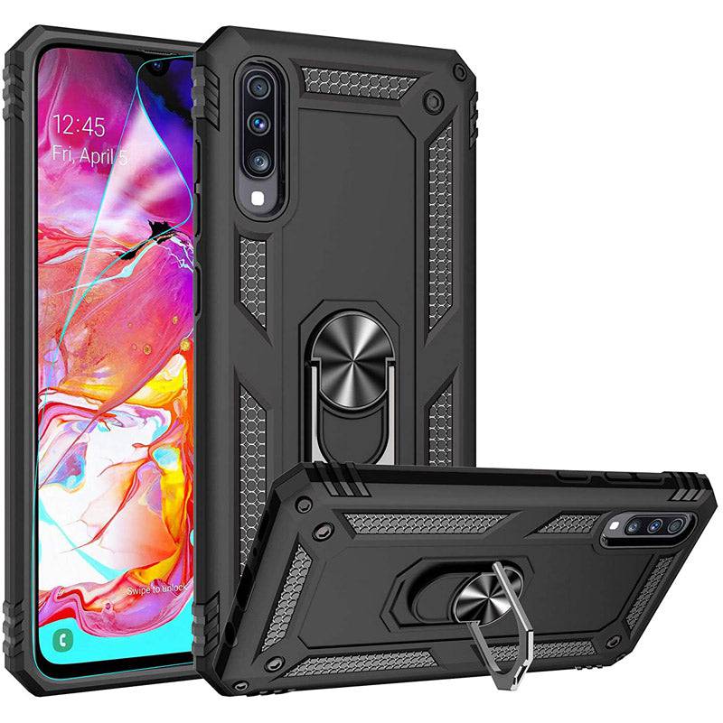 Samsung A70 Luxury Armor Ring Bracket Phone Case With 1-Pack Tempered Glass Screen Protector