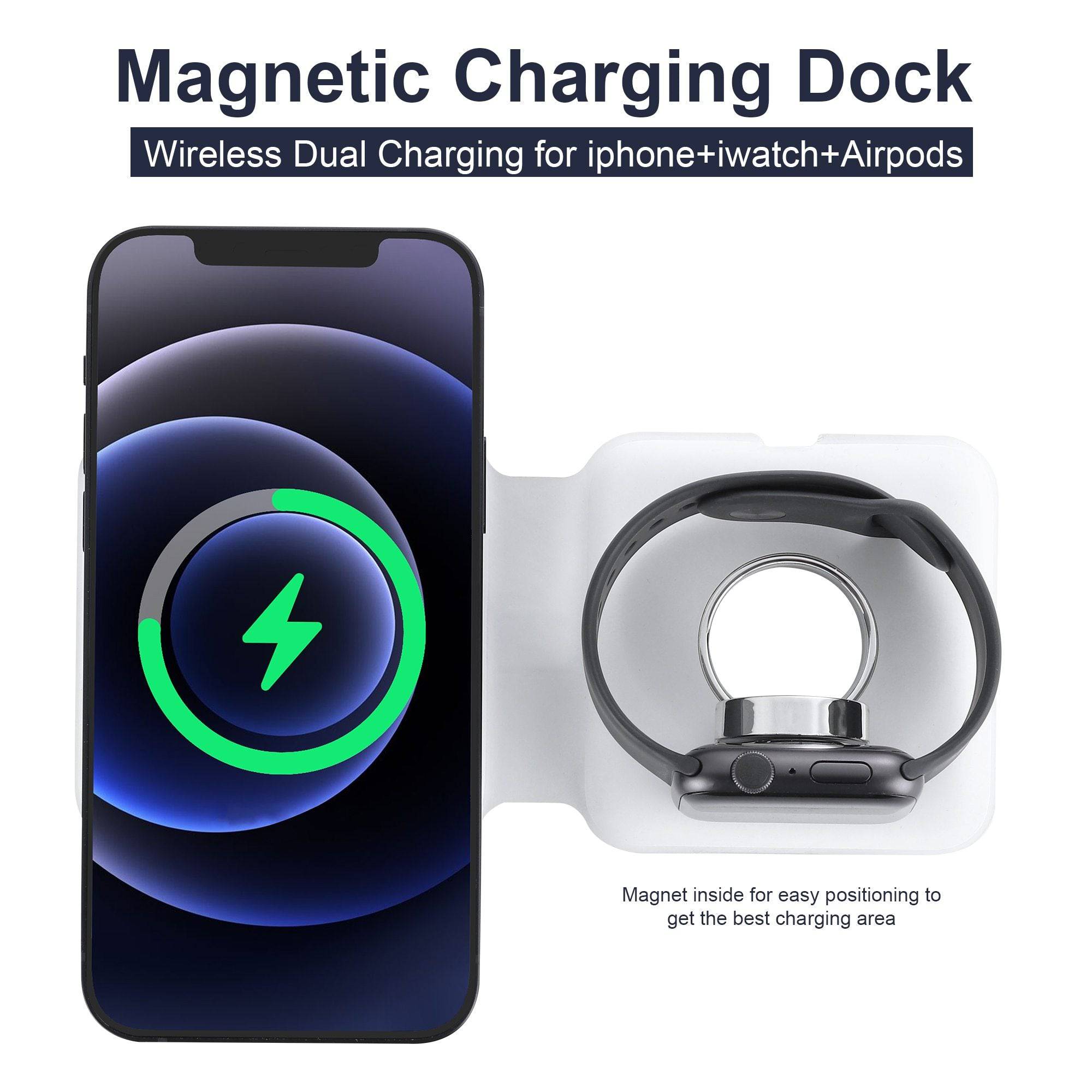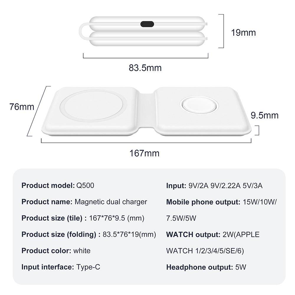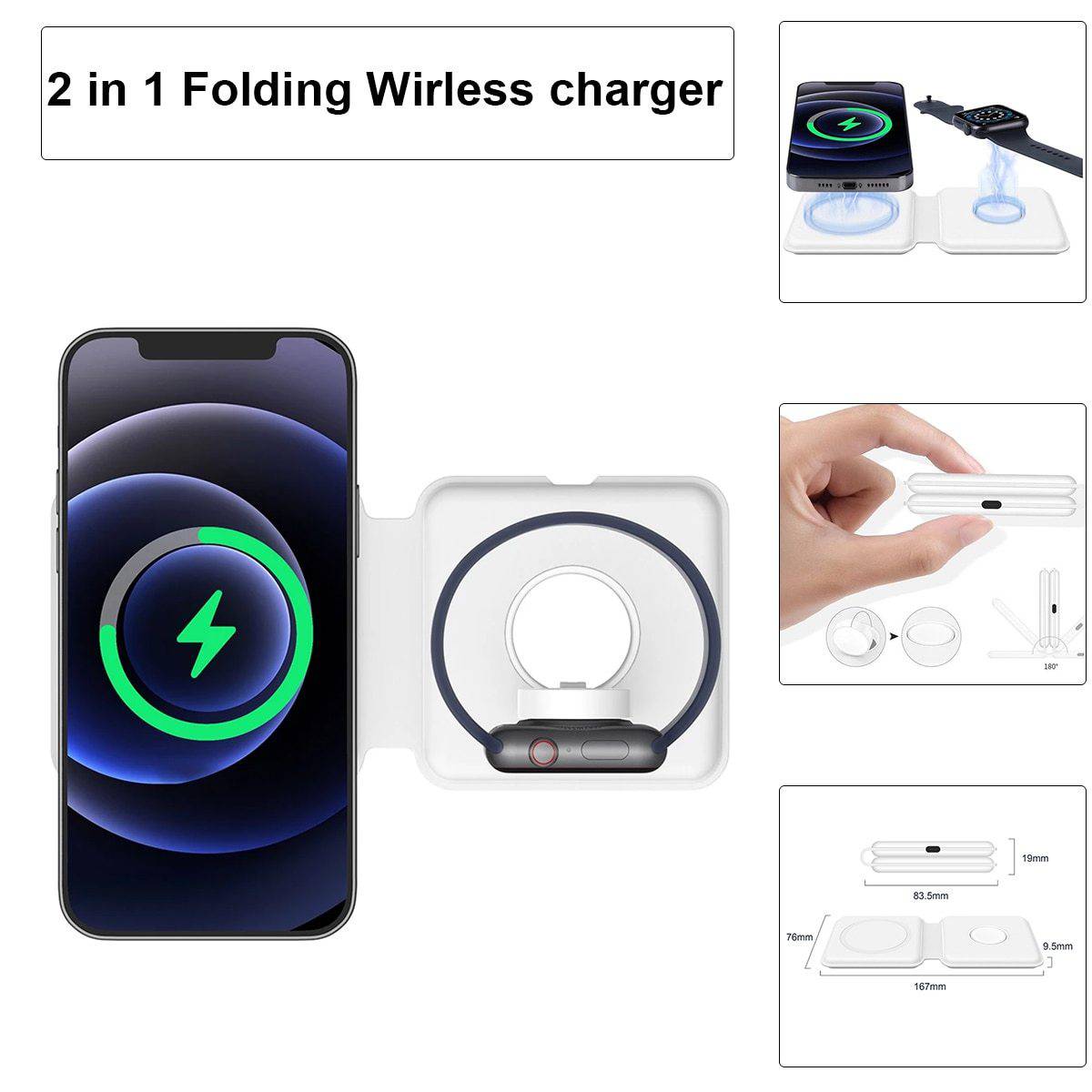 15W Qi Wireless Magnetic 2 in 1 Foldable Fast Charger for iPhone 12 11 Airpods Apple Watch