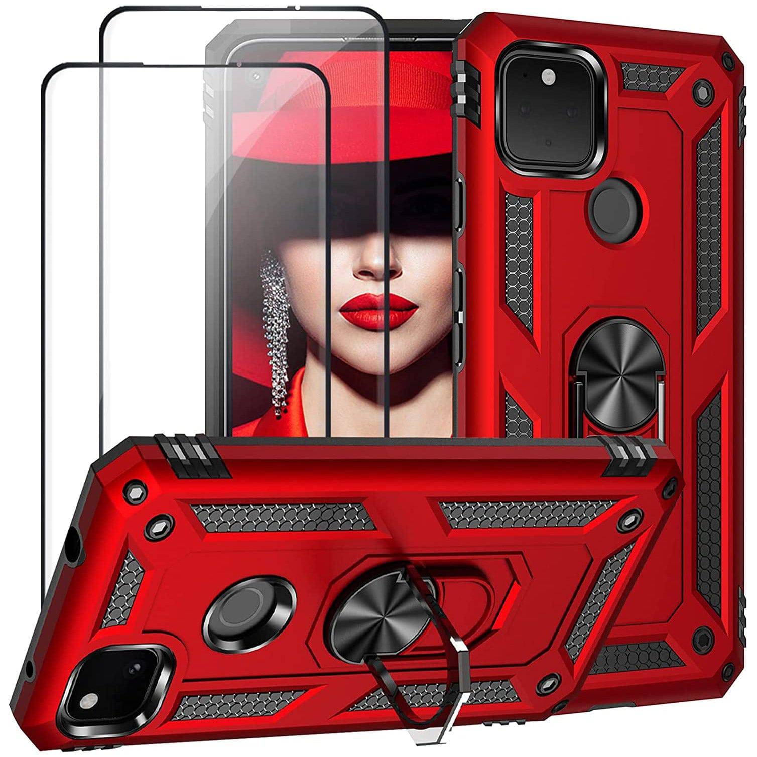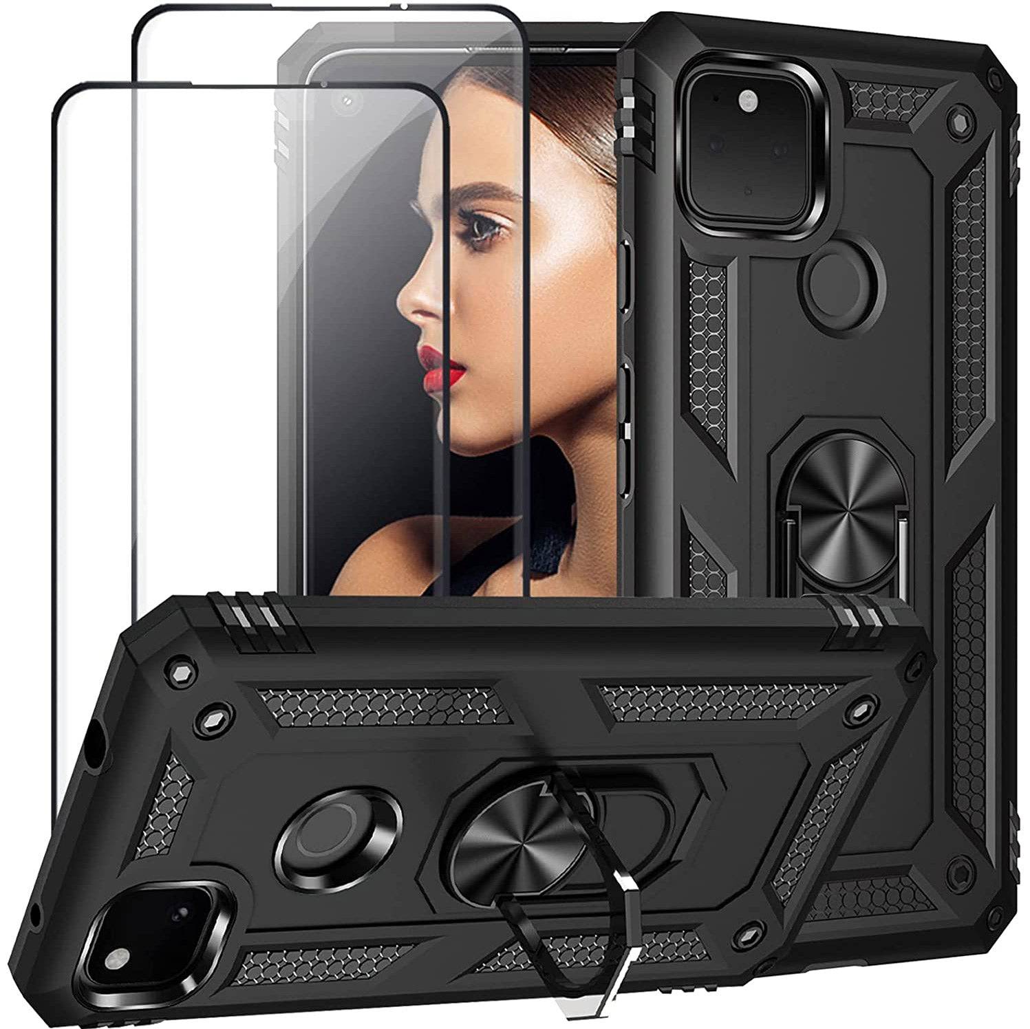 2022 Luxury Armor Ring Bracket Phone case For Google Pixel 4A With 2-Pack Screen Protectors