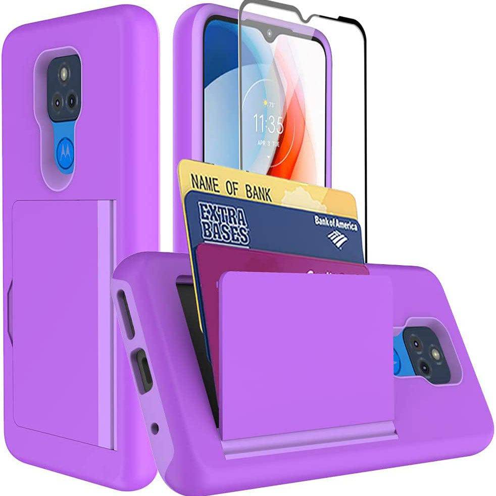 Capa protetora de cartão de armadura para Moto G Play 2021 com protetor de tela
