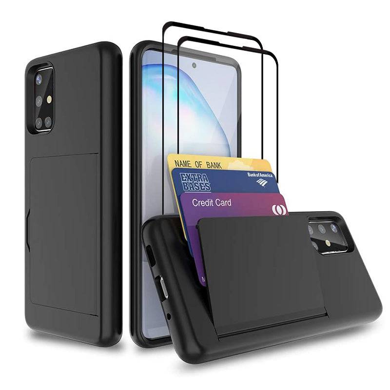 Capa protetora de porta-cartões Armor para Samsung Série A com protetores de tela de 2 pacotes