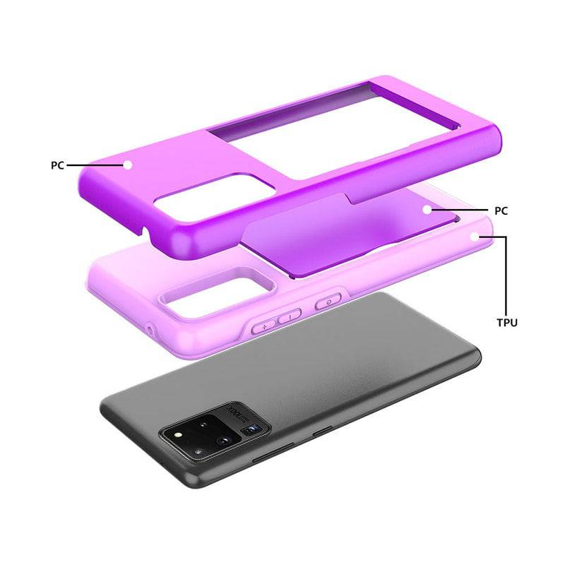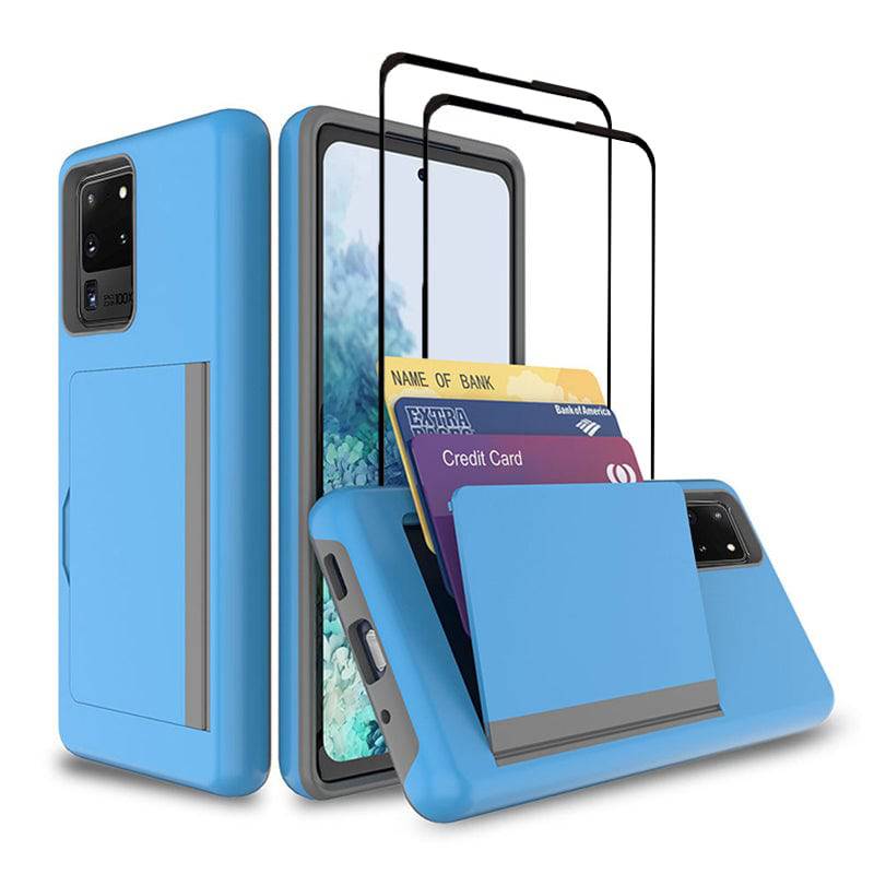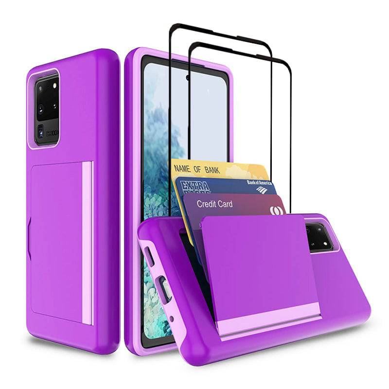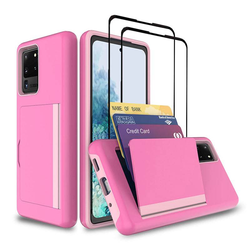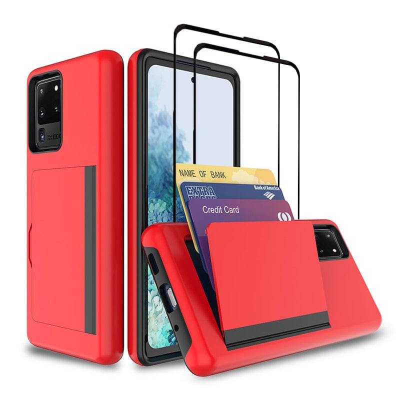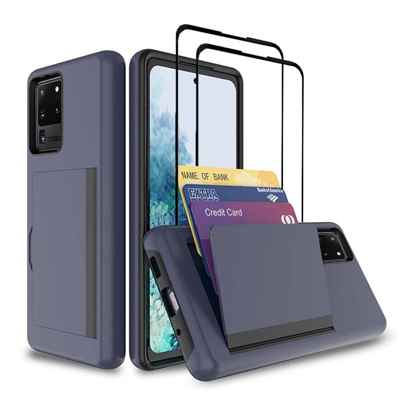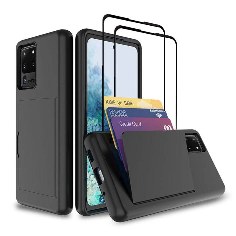 Capa protetora de cartão de armadura para Samsung S20 Ultra com protetores de tela de 2 pacotes