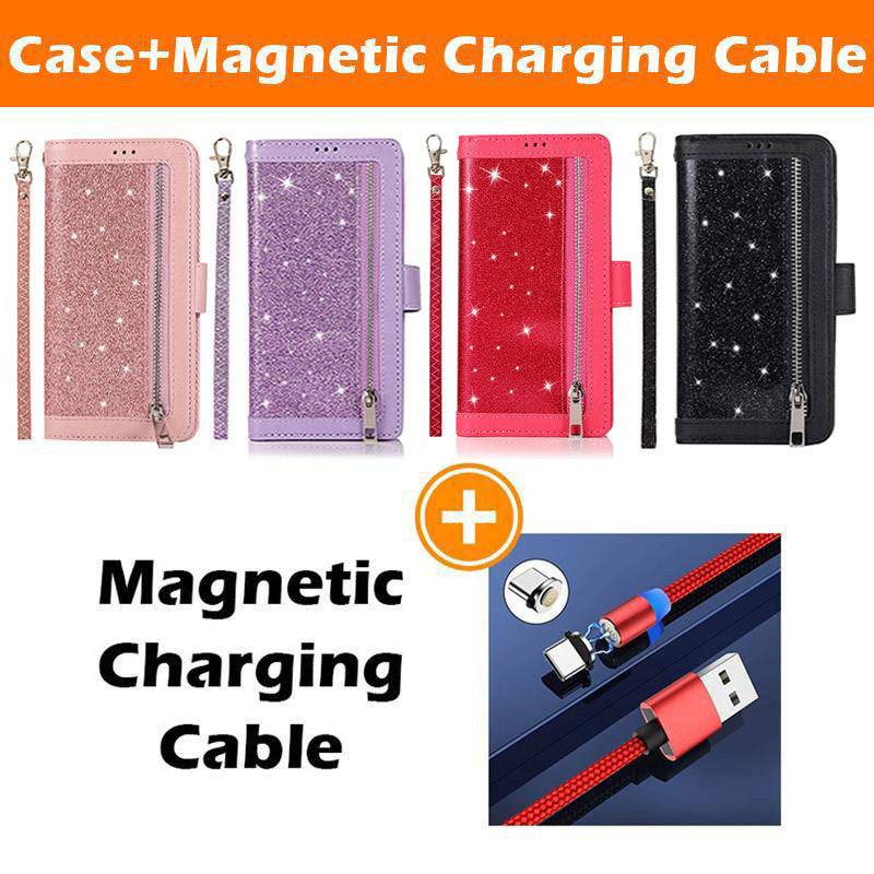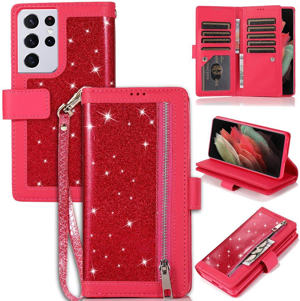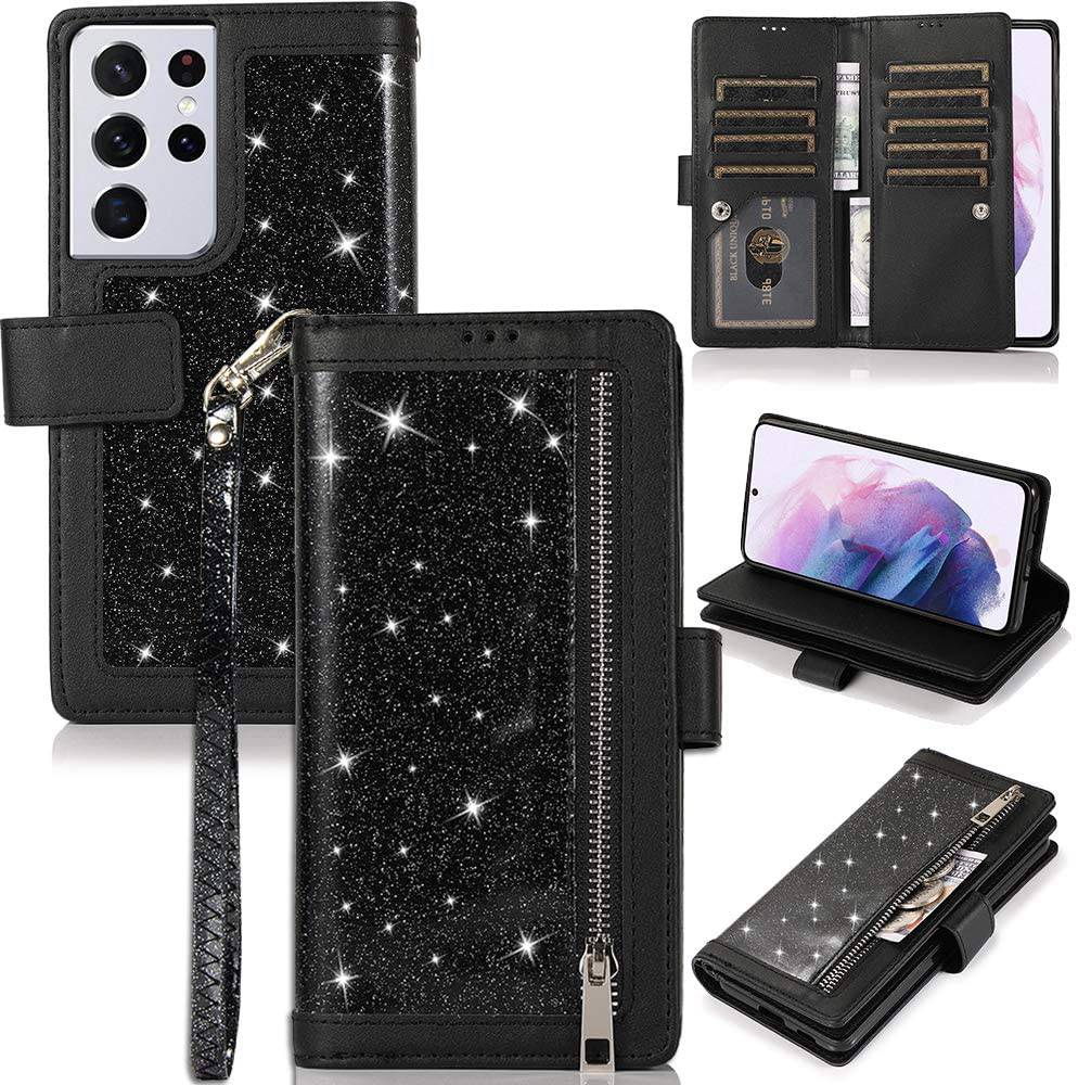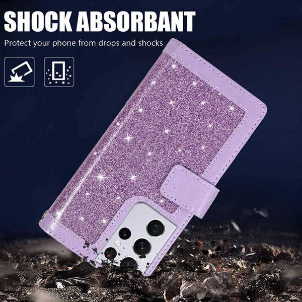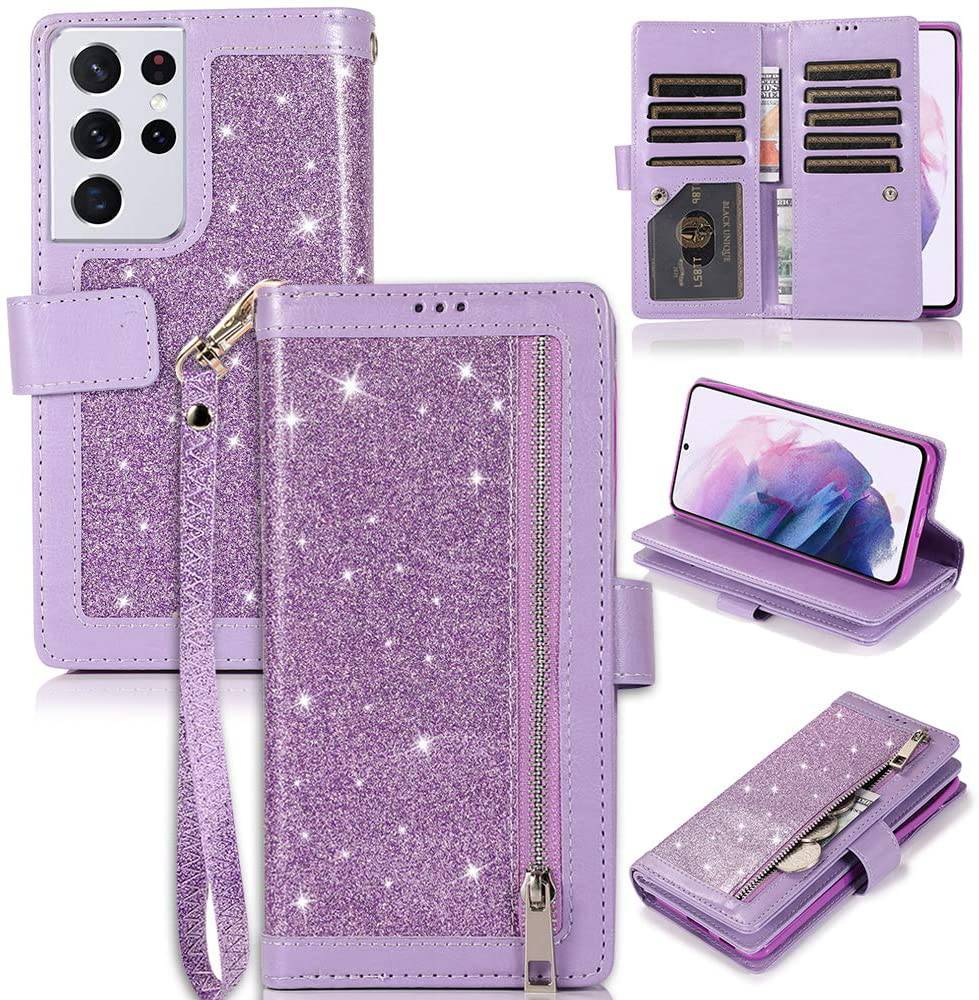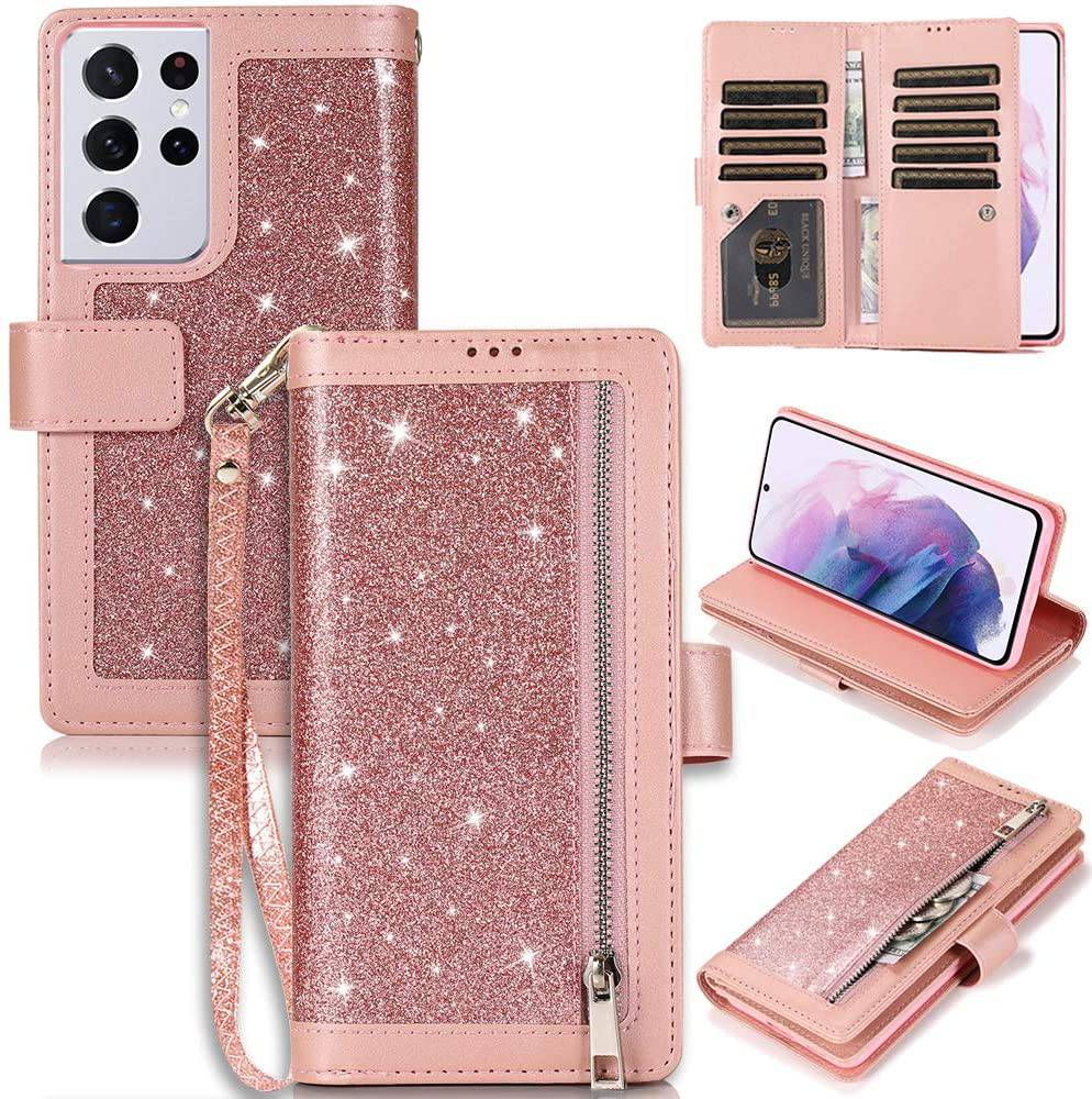 Capa de couro tipo carteira Bling para Samsung S21 Ultra