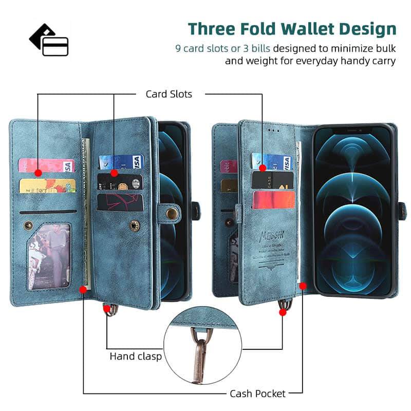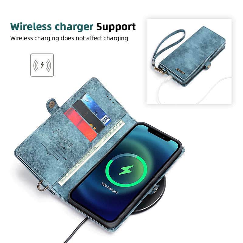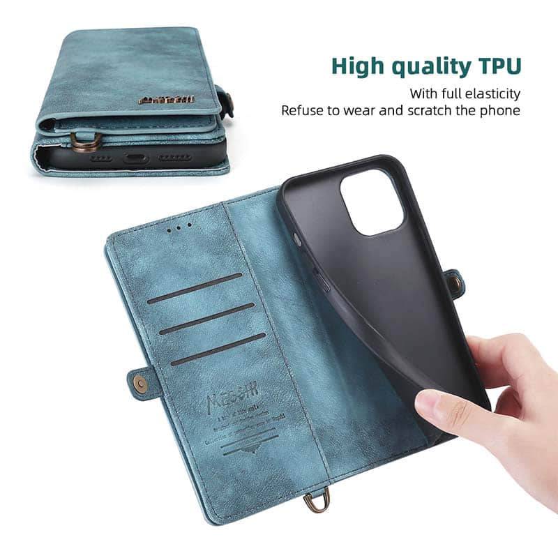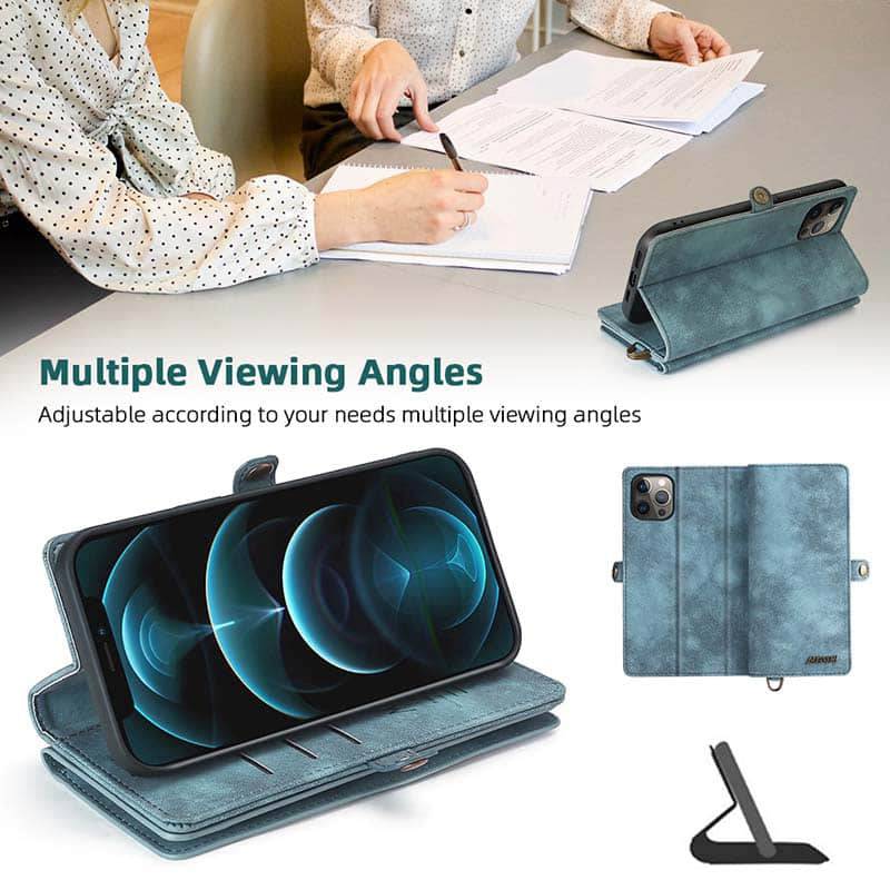 - Função 2 em 1: O estojo de couro e a carteira podem ser desmontados e combinados pelo Poderoso Magnético.