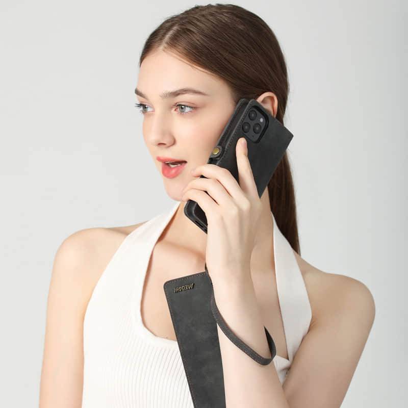 Capa de telefone de couro de pulso com porta-cartões para iPhone