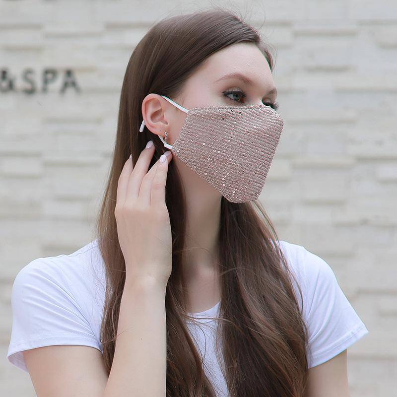Máscara facial moderna, brilhante, lavável e reutilizável para uso externo com lantejoulas
