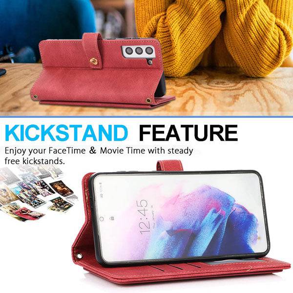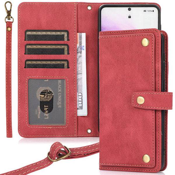 Capa de telefone carteira à prova de choque de couro crossbody para Samsung S21 Plus