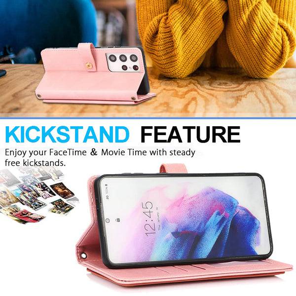 Capa de telefone carteira à prova de choque de couro crossbody para Samsung S21 Ultra