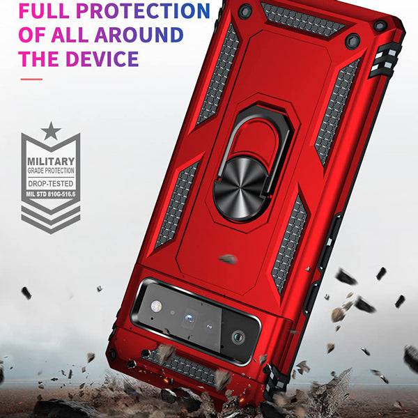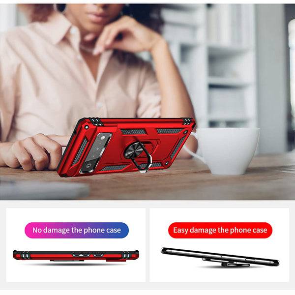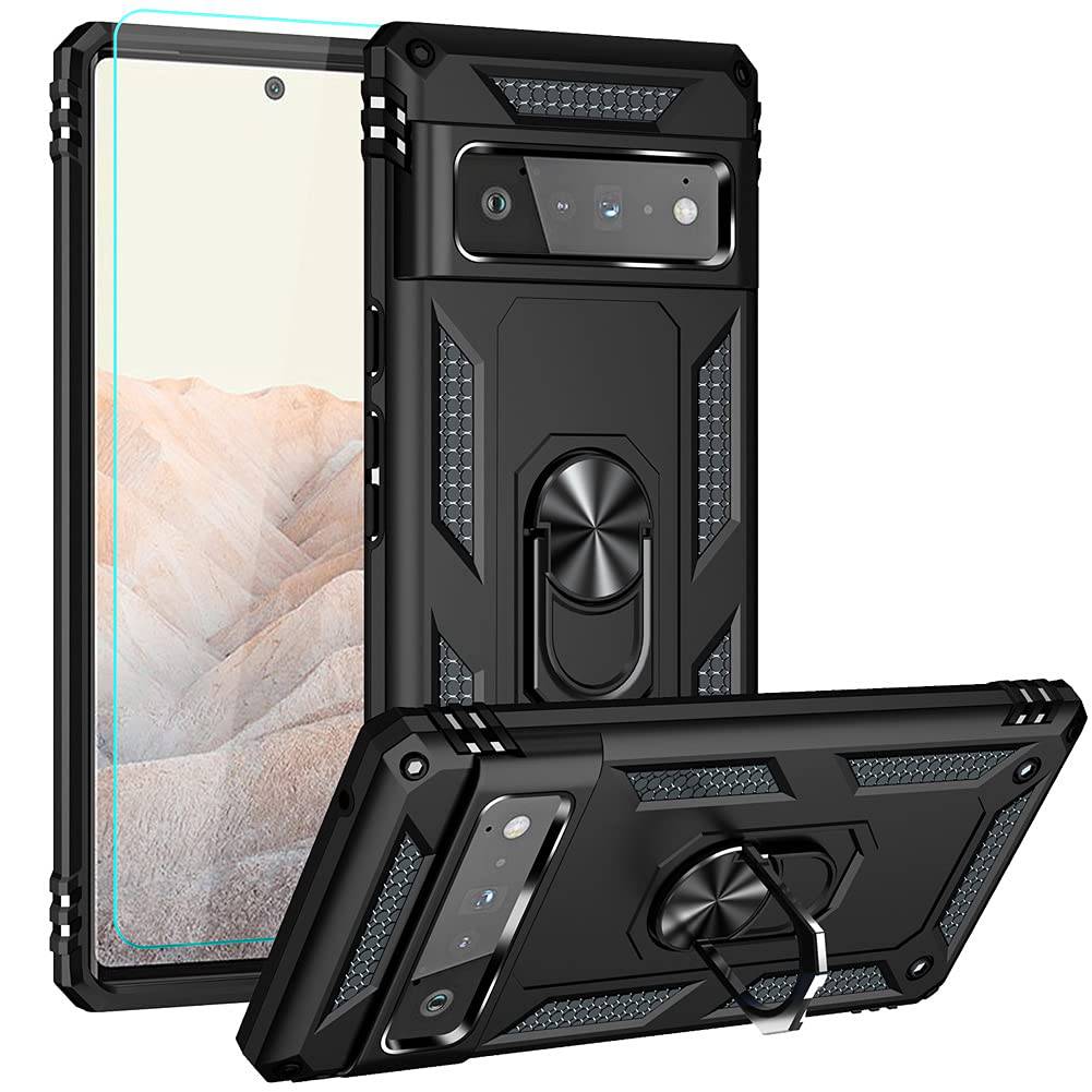 Capa de telefone com suporte de anel de armadura de luxo para Google Pixel 6 Pro com protetor de tela de 1 pacote