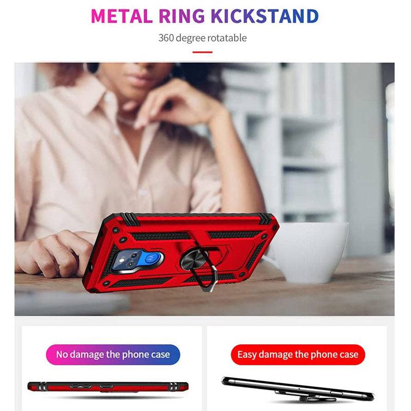 Capa de telefone luxuosa com suporte de anel de armadura para Moto G Play 2021 com protetor de tela