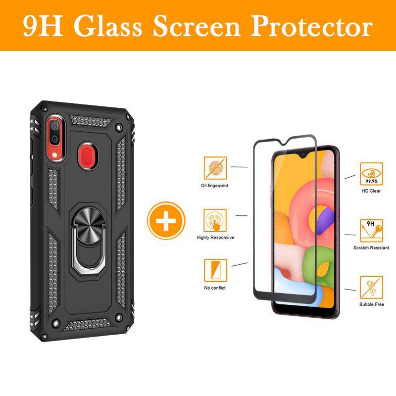 Capa de telefone com suporte de anel de armadura de luxo para Samsung A20 e A30-Entrega rápida