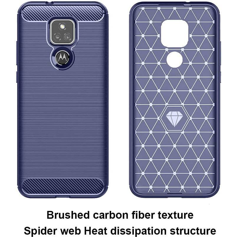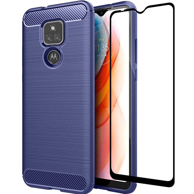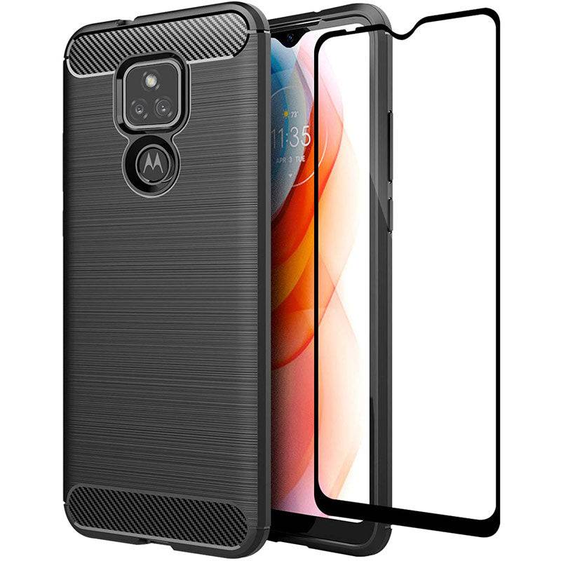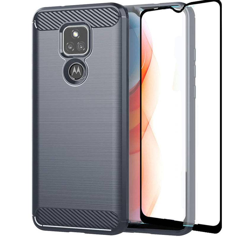 Capa luxuosa de fibra de carbono para Moto E7 com protetor de tela