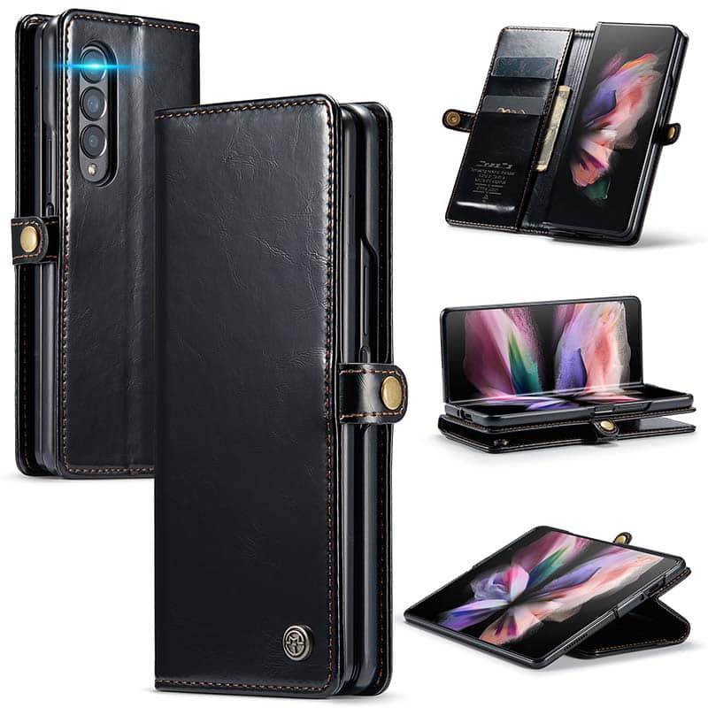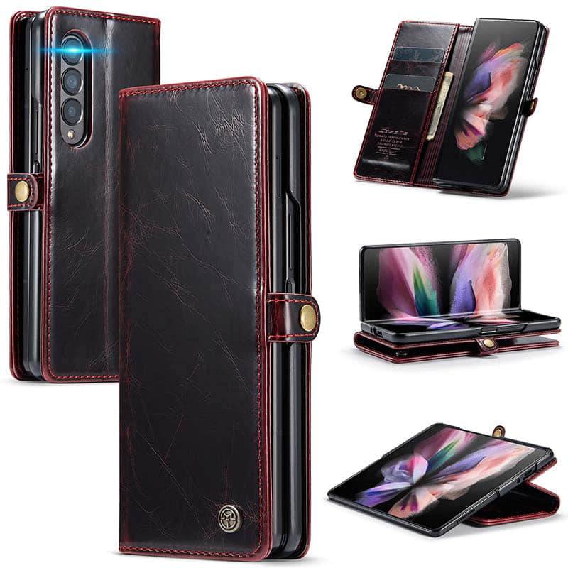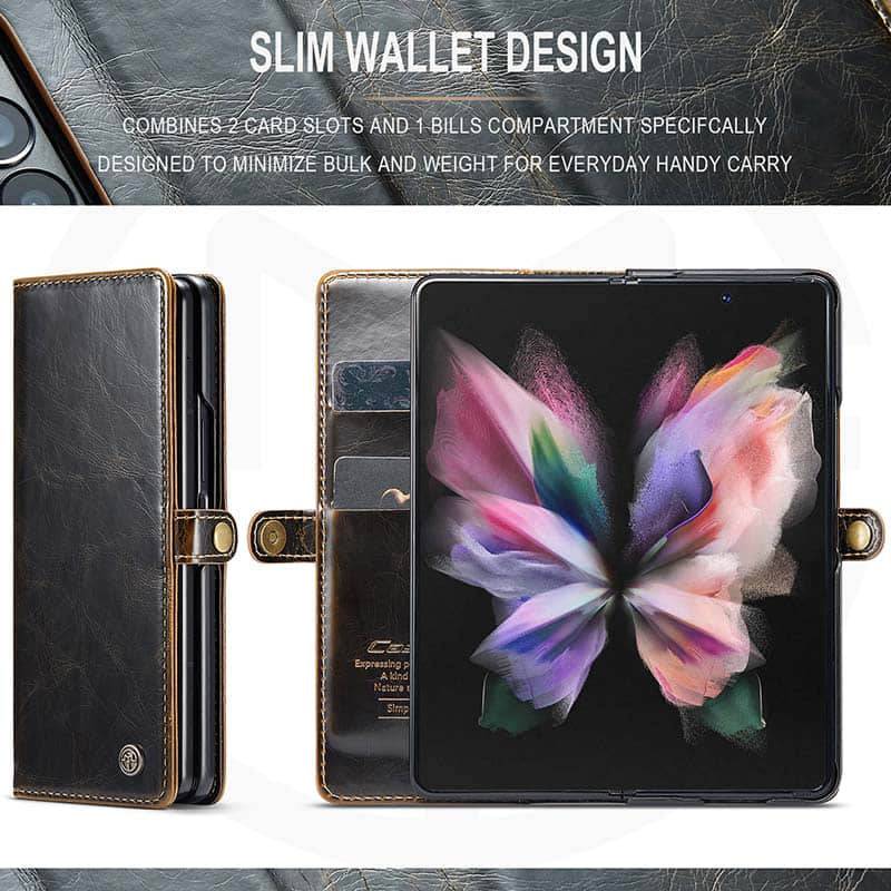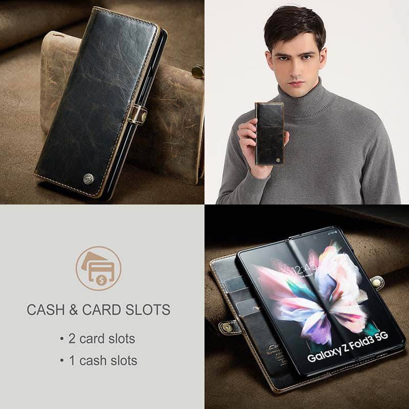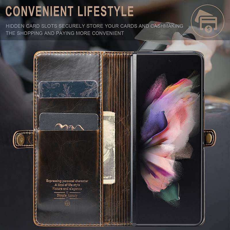 Capa de telefone com slots de cartão de couro flip de luxo para Galaxy Z Fold 3 5G