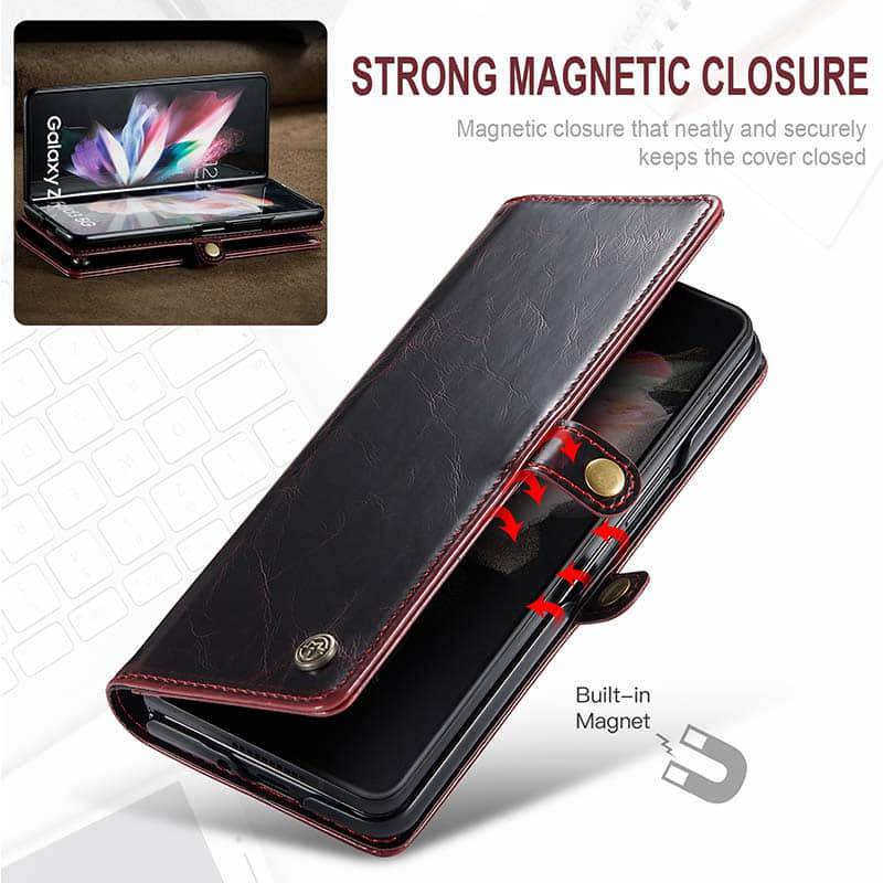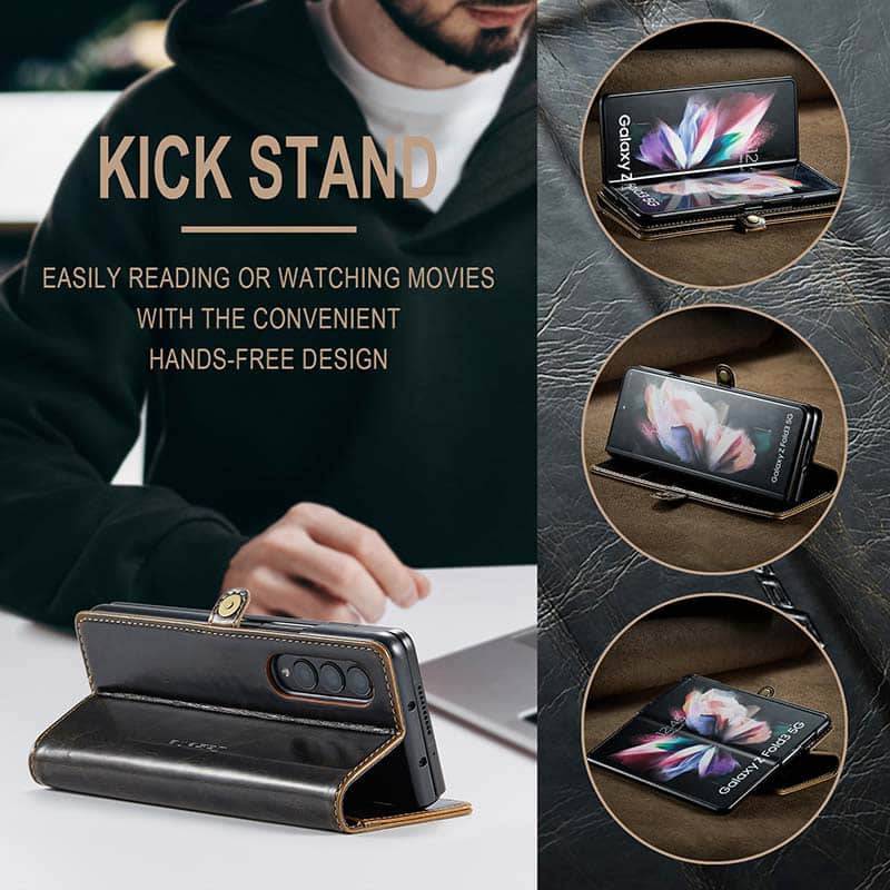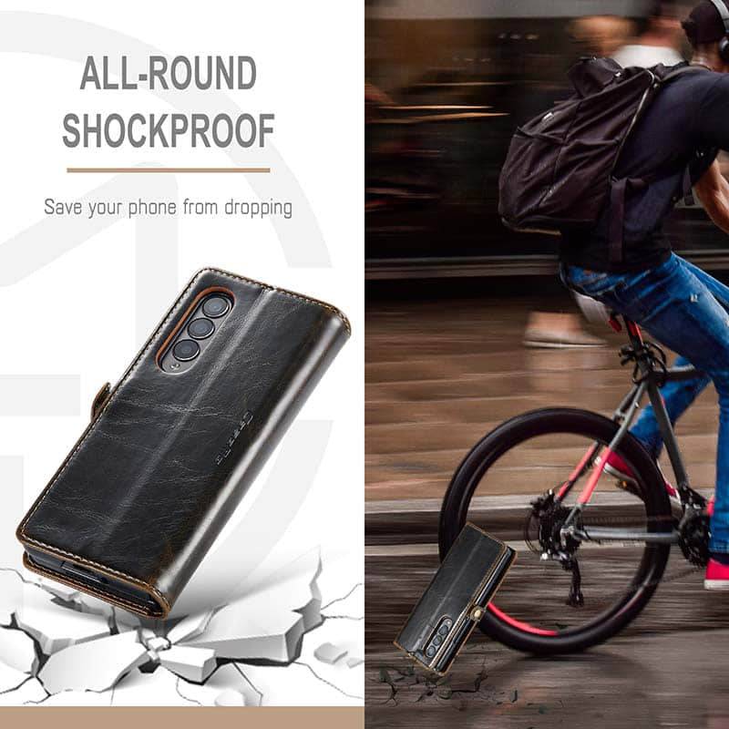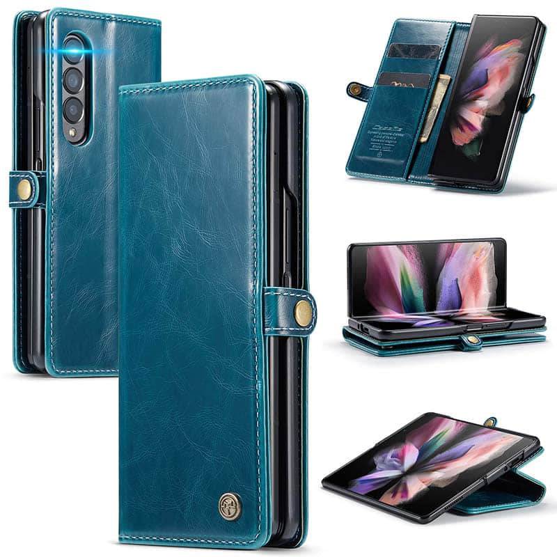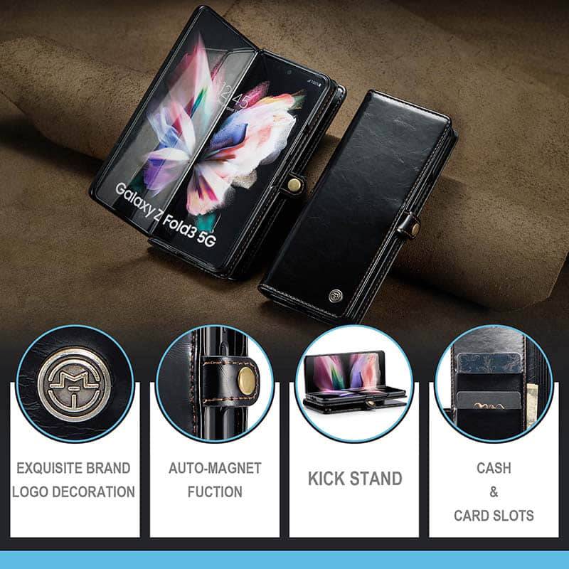Capa de telefone com slots de cartão de couro flip de luxo para Galaxy Z Fold 3 5G