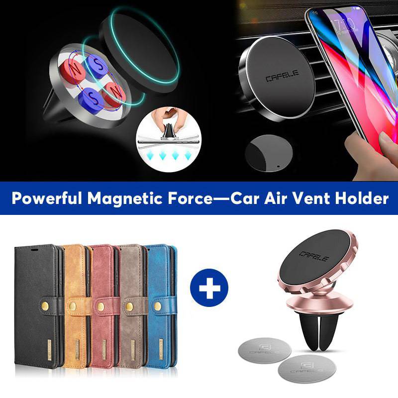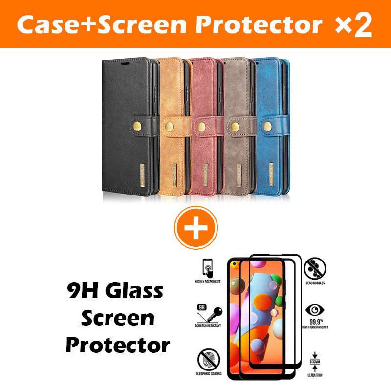 ☑️ Esta capa apresenta um design 2 em 1 com uma capa tipo carteira de couro dividida e uma capa traseira removível revestida de couro .