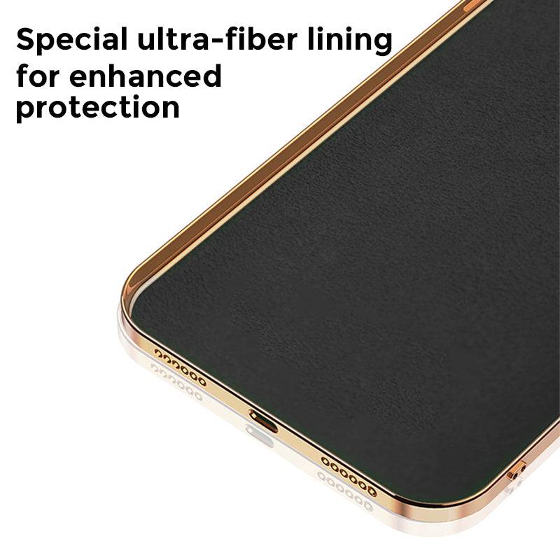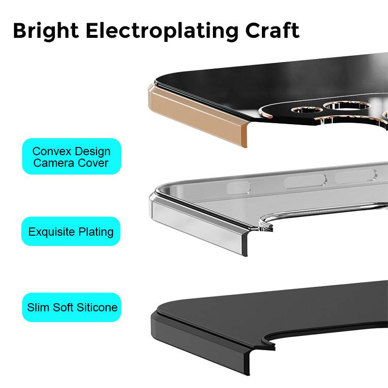 Esta capa de telefone com borda elevada para absorção de choque para proteção na tela e na câmera. Amortecedor flexível em TPU com revestimento brilhante em ouro rosa borda fina, sensação de toque suave e confortável e fácil de instalar e remover O caso.